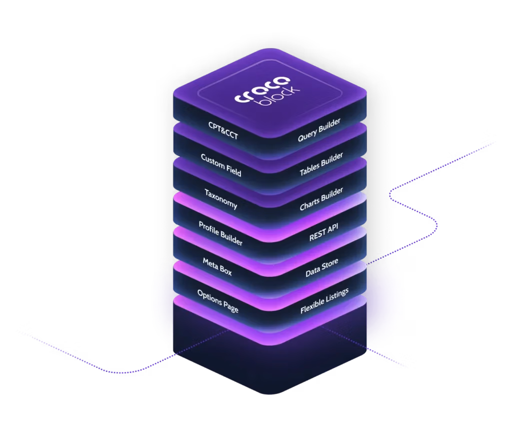 Vlastní typy obsahu (CPT), listingy, vztahy, filtrace, formuláře a chytré dotazy. Ideální pro katalogy, reality, adresáře, blogové databáze i B2B weby.